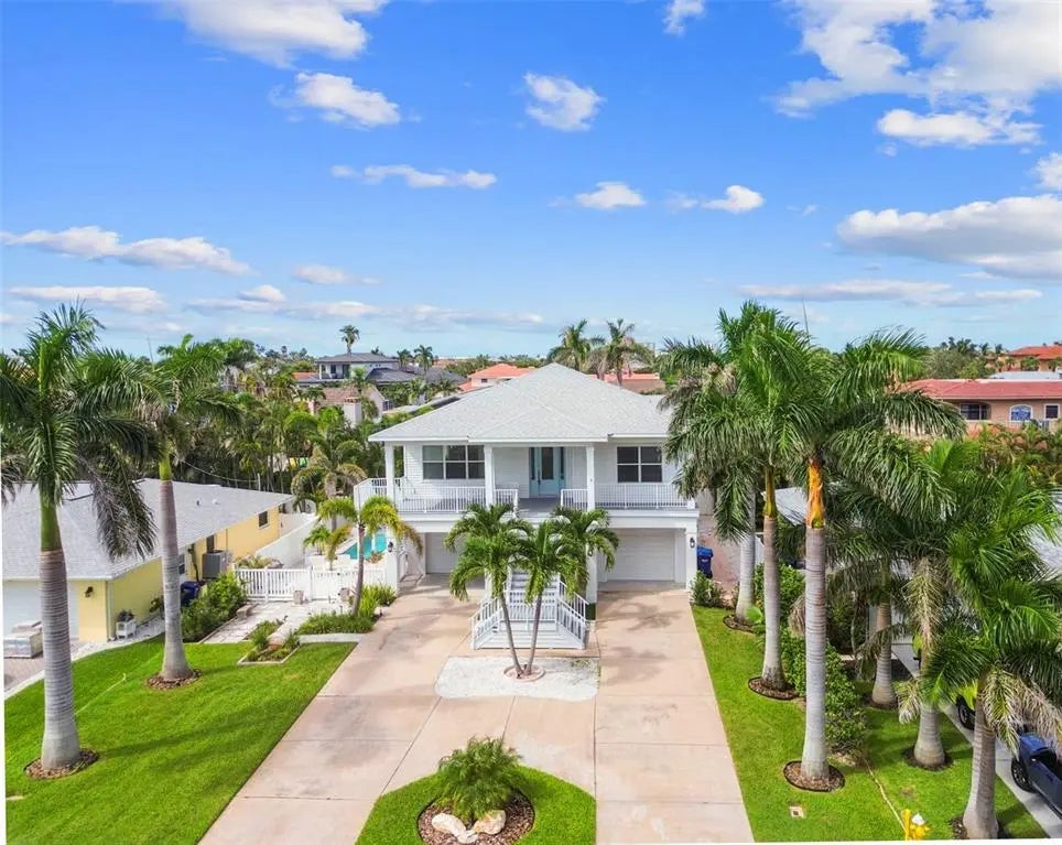 Over 4,500 sq. ft. of living and entertaining space with an elevator and a beautiful pool with fountains! Live in one of the most exclusive beach communities on the west coast of Florida! Belleair Beach is home to less than 700 households and fewer than 1,700 residents with 3 private beach entrances featuring resident only parking. This elegant elevated custom built home offers sunrise views over the intracoastal waterway in the morning and sunsets over the Gulf in the evenings from the expansive 394 sq. ft. covered front porch. Ideally located only 5 houses from both the beach and intracoastal. Take a quick golf cart ride to the community center for tennis and pickleball or a short stroll and you’ll be fishing off the community dock one street away or head toward the Gulf and enjoy the private and exclusive beach access to the world-famous white sands. You don't have to worry about this house flooding, it was custom built in 2016 as an upscale residence to FEMA standards with a main floor elevation of 17.5 feet, so even insurance costs are minimal. Step inside and enjoy the light and bright living area with custom molding and fine detail work throughout. From vaulted cathedral ceilings, marble floors, and hand-scraped hardwood, to Abalone shell accent walls, the luxury of this home is impeccable. Built to detailed and exacting standards as a beach house for national television show hosts, the design boasts the ideal entertaining and living space that even includes an elevator. The 4-car tandem garage floor has new Polyaspartic flooring which is four times stronger than epoxy and perfect for the island lifestyle, pool entertainment room and gym. Just outside the double doors of the downstairs area is the custom pool with a splash pad, jets, and color changing fountains. If you’re looking for a beautiful, elevated beach house in the prestigious neighborhood of Belleair Beach, this move-in ready jewel is an investment for generations. View the Matterport 3D walkthrough for a detailed view of the entire house. All measurements are approximate and should be verified by buyers.